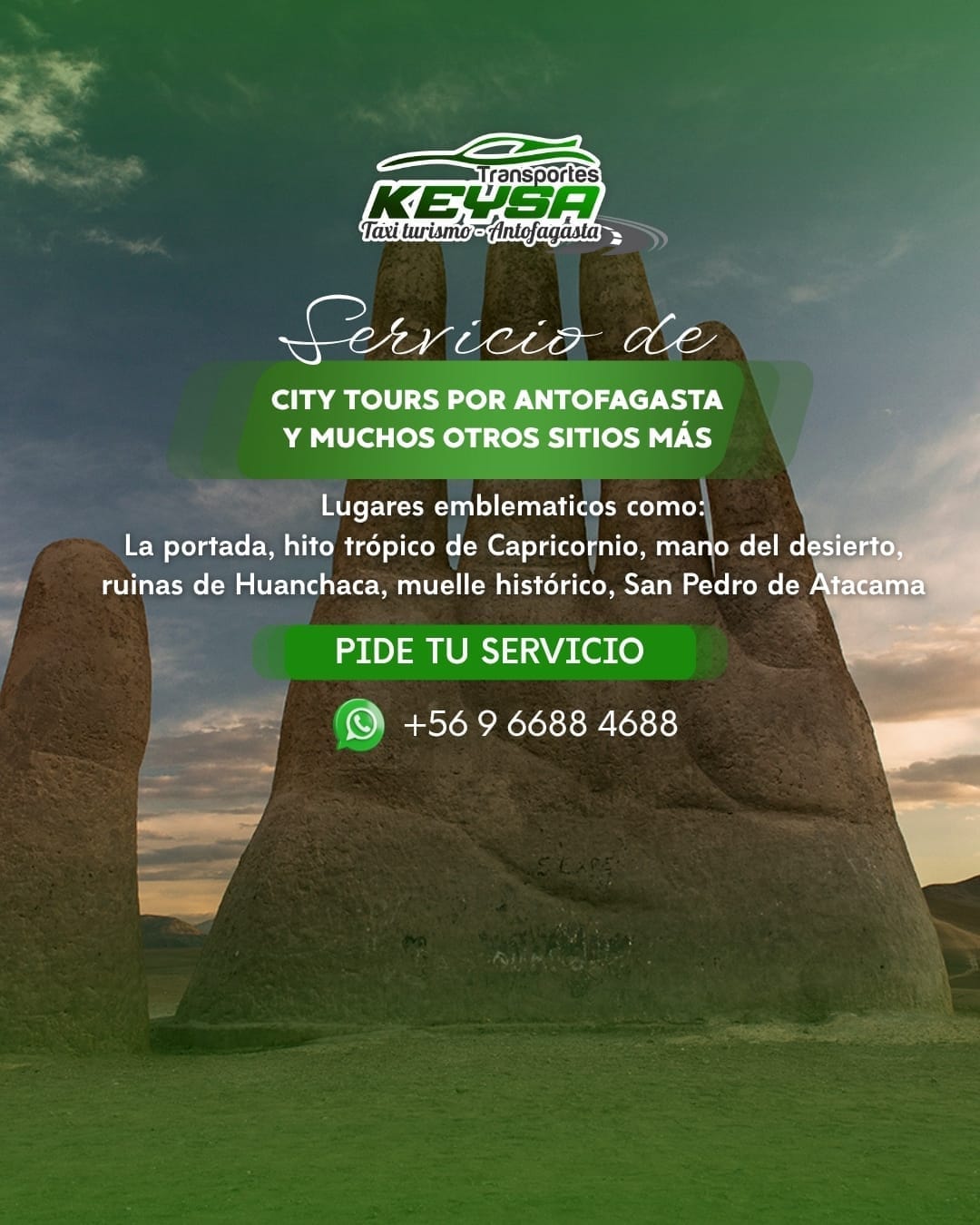En Transportes Keysa te ofrecemos radio taxi y transporte privado en Antofagasta. Traslados seguros para empresas, viajes especiales y particulares, con atención 24/7. ¡Reserva por WhatsApp!